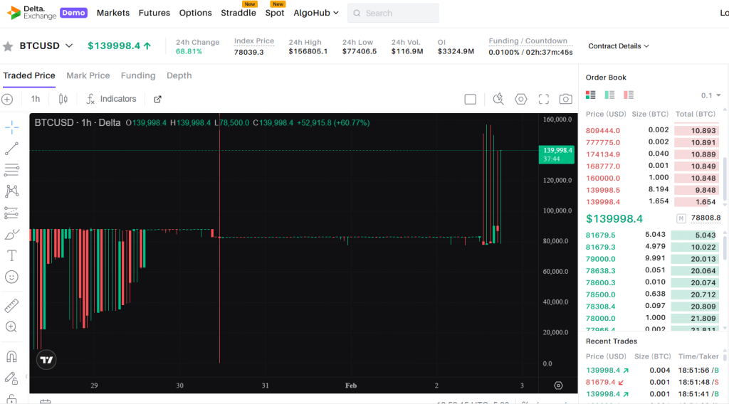 Delta Exchange provides a demo account where you can test strategies under real market conditions. Orders behave like live trades, charts move with the market, and results show how positions would perform.